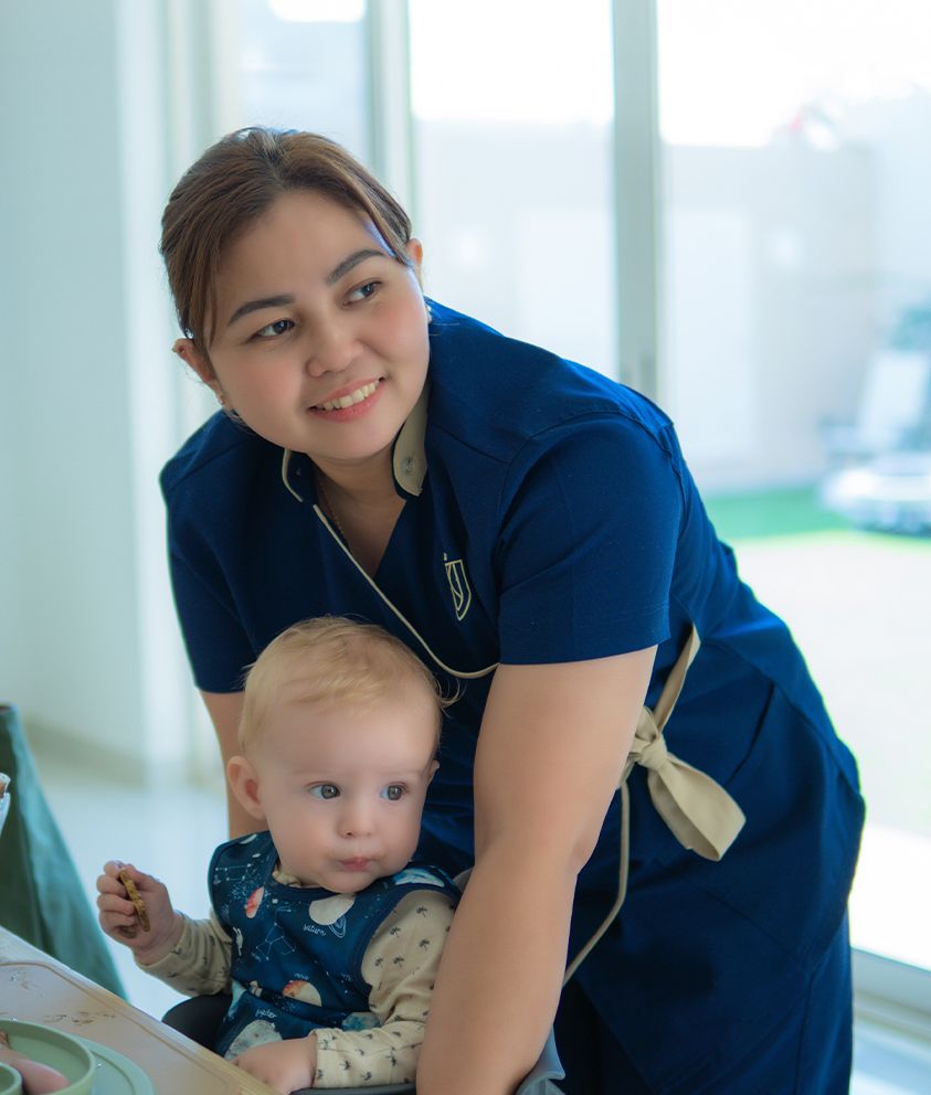 - Responsibilities: Provides specialised care, including hygiene, growth & development, nutrition, tummy time, sleep training and assistance.